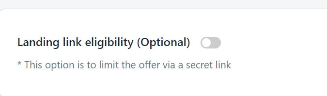 I. On offer setting page, scroll down to Landing link eligibility section and click on toggle to turn on: